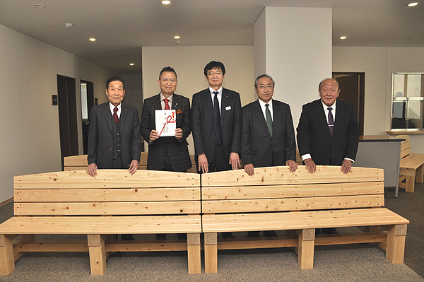 平成29年2月27日に、農林中央金庫と埼玉県森林組合連合会、秩父広域森林組合の共同により、秩父産ヒノキを利用した木製ベンチを秩父市へご寄贈いただきました。 これは、農林中央金庫の森林・林業分野におけるCSR活動(社会貢献活動)の一環として、今回秩父市にご寄贈いただいたものです。